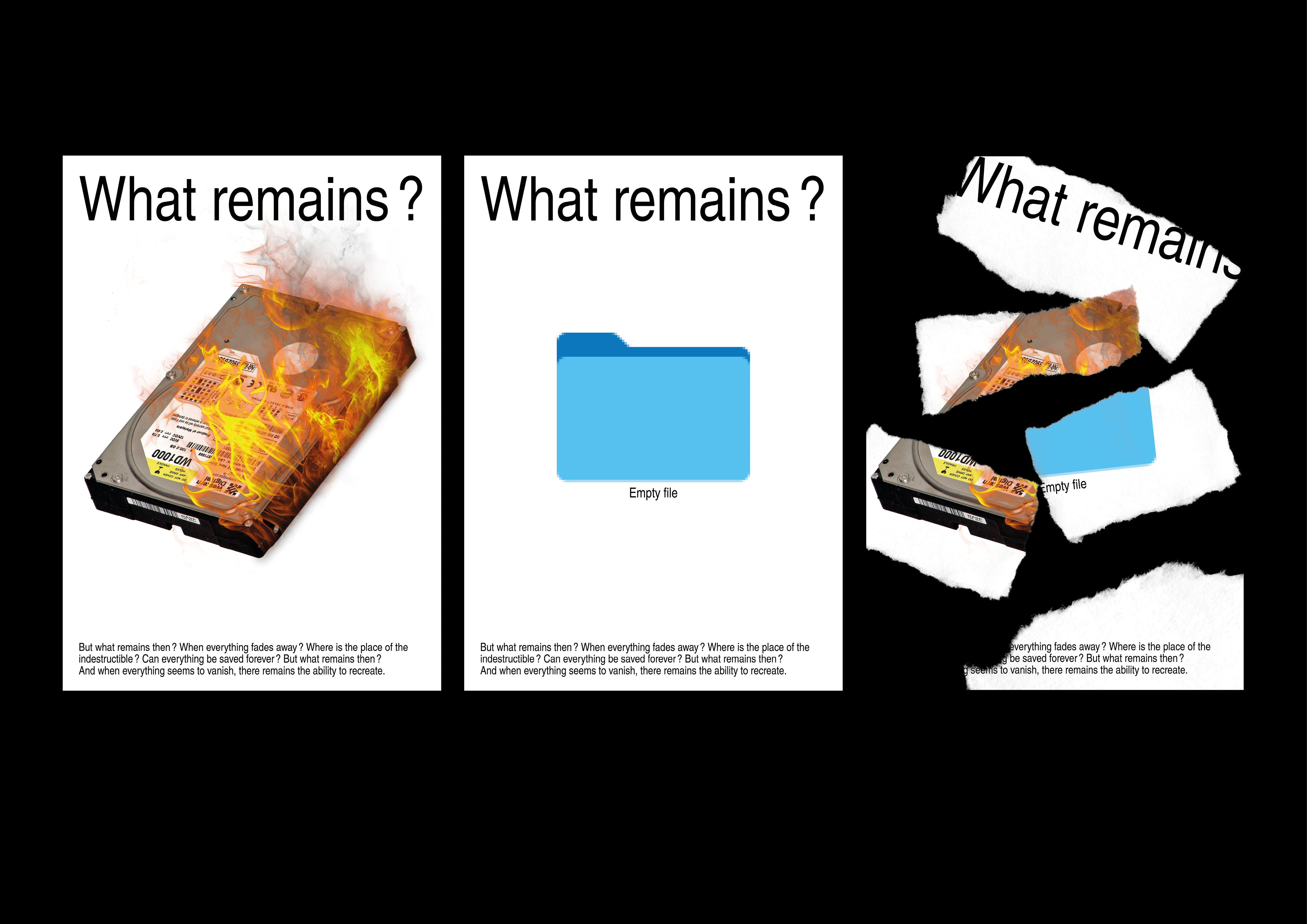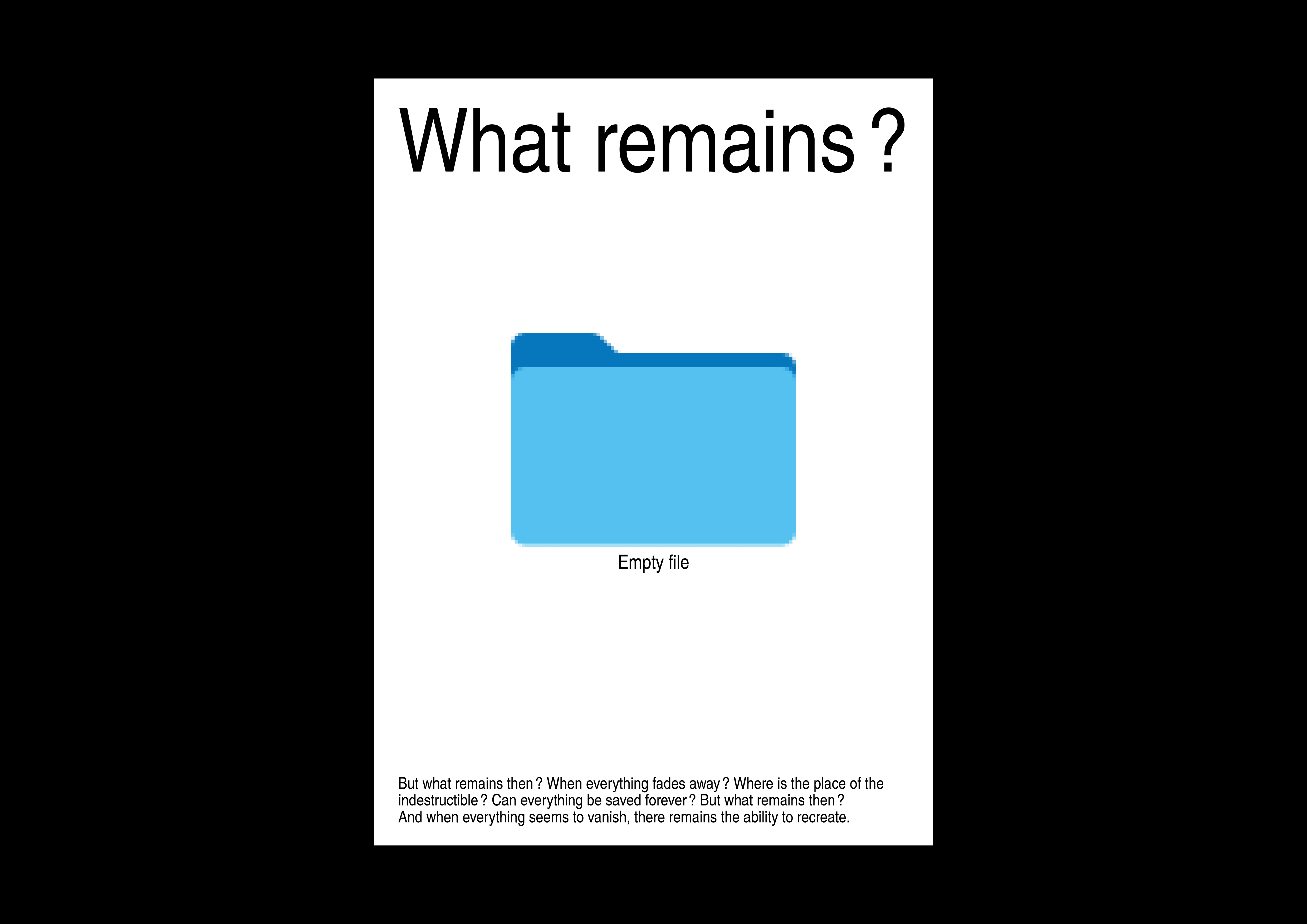 What remains is a personal project that questions the notion of things being ephemeral. What are the limits of digital media? For example, in the field of graphic design, is it possible to preserve an image forever?